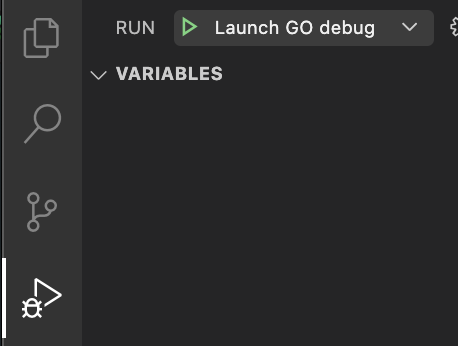 When your building your go application in VSCode it is easy to debug but you will have to select & open the main.go file and then press play to go into debugging mode.